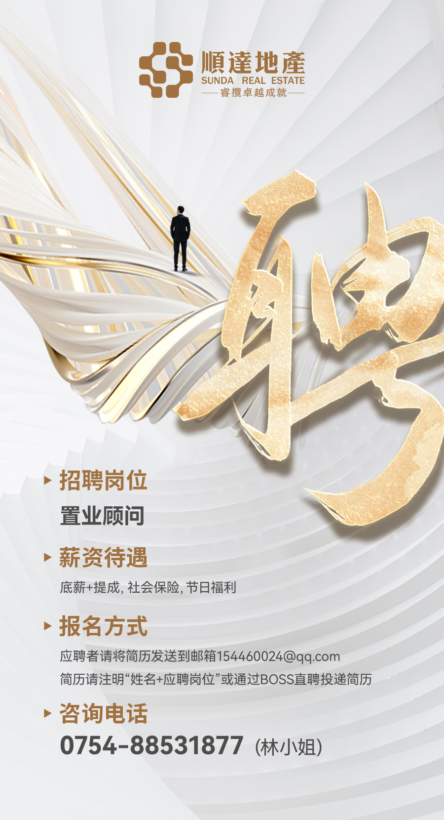 我们的价值观是“以人为本,崇尚业绩,服务顺达,奉献社会",这种源于社会、服务社会的企业价值观,就是每位员工忠诚企业、融入社会的人生观。我们始终坚持以人为本,关怀每一位员工,视人才为公司最宝贵的财富,尊重人才、理解人才、培养人才、激励人才,努力创造良好的用人机制,为每位员工提供一个公平竞争、施展才华的舞台并致力于对员工的培训和提升,实现员工与企业的共同发展。顺达地产倡导“先利人、后利己”的价值观,在创造企业和社舍价值的同时实现员工的个人价值,加强人才储备与提升,打造出一支年轻且有进取心的团队。
